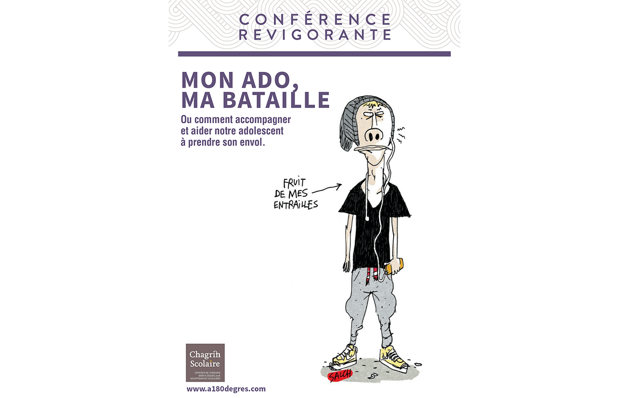 Ils nous angoissent, nous culpabilisent, nous attristent et nous rendent fous parfois. Nous ne savons pas comment les prendre, comment leur parler, comment les accompagner dans cette dernière ligne droite avant leur saut dans l’âge adulte. Et pourtant, à ce moment précis, une relation apaisée et affectueuse peut aider vraiment notre adolescent à prendre son envol. Il faut parfois, en tant que parent déboussolé, faire pour cela un virage à 180° et lâcher un certain nombre de nos croyances et principes. En partant de cas issus de leur pratique, les thérapeutes d’A180 degrés ont élaboré cette revigorante conférence qui vous donnera des pistes concrètes et de très bonnes raisons d’espérer…